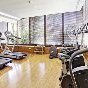 Es gibt ein Fitnessstudio mit einem breiten Sportangebot.